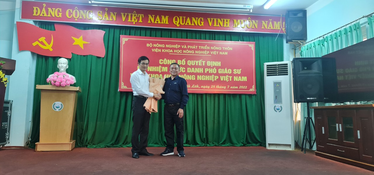 Ngày 28/07/2022, Viện Khoa học Nông nghiệp Việt Nam đã tổ chức công bố Quyết định Bổ nhiệm chức danh Phó giáo sư tại Viện Khoa học kỹ thuật Nông lâm nghiệp Tây Nguyên. Buổi lễ được Ban Thông tin & Đào tạo - Viện Khoa học Nông nghiệp Việt Nam tổ chức trang trọng và đúng theo quy định. Viện Bảo vệ thực vật rất vui mừng và phấn khởi được Hội đồng Chức danh giáo sư Nhà nước công nhận 1 PGS, bổ sung nguồn lực chất lượng cao cho Viện, đồng thời sẽ đóng góp lớn trong quá trình đào tạo cán bộ chuyên sâu cho Viện và cho các cơ quan, Bộ ngành liên quan.