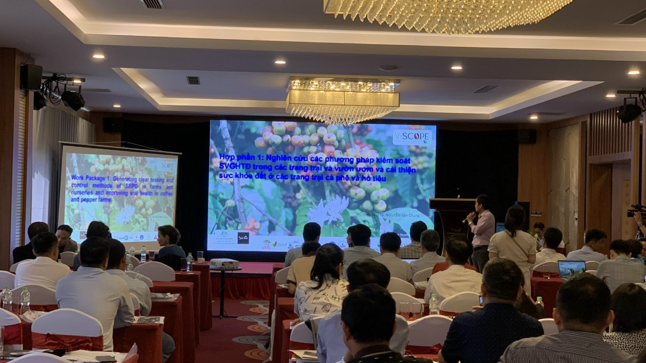 Thay mặt Dr. Nguyễn Văn Liêm, Dr. Nguyễn Văn Chung báo cáo tiến độ thực hiện của hợp phần 1 mà Viện Bảo vệ thực vật là đồng chủ trì