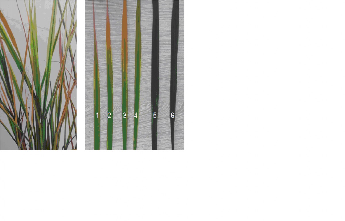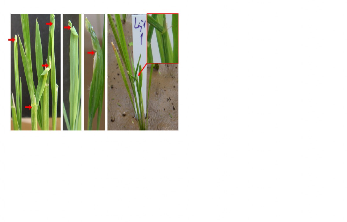 - Triệu chứng mẫu bệnh thu thập tại xã Cần Kiệm, huyện Thạch Thất, Hà Nội (Cây lúa thu thập ở giai đoạn trỗ): Cả 5 cây lúa đều mang triệu chứng của bệnh bạc lá - Bệnh do vi khuẩn Xanthomonas oryzea gây ra, ở mức độ khá nặng. - Riêng cây số 1 và cây số 2 (mẫu HN-1 và HN-2) cùng biểu hiện một số triệu chứng giống nhau và giống với bệnh lùn sọc đen phương nam, gồm: lá xanh đậm (nhẹ), lá non mới ...