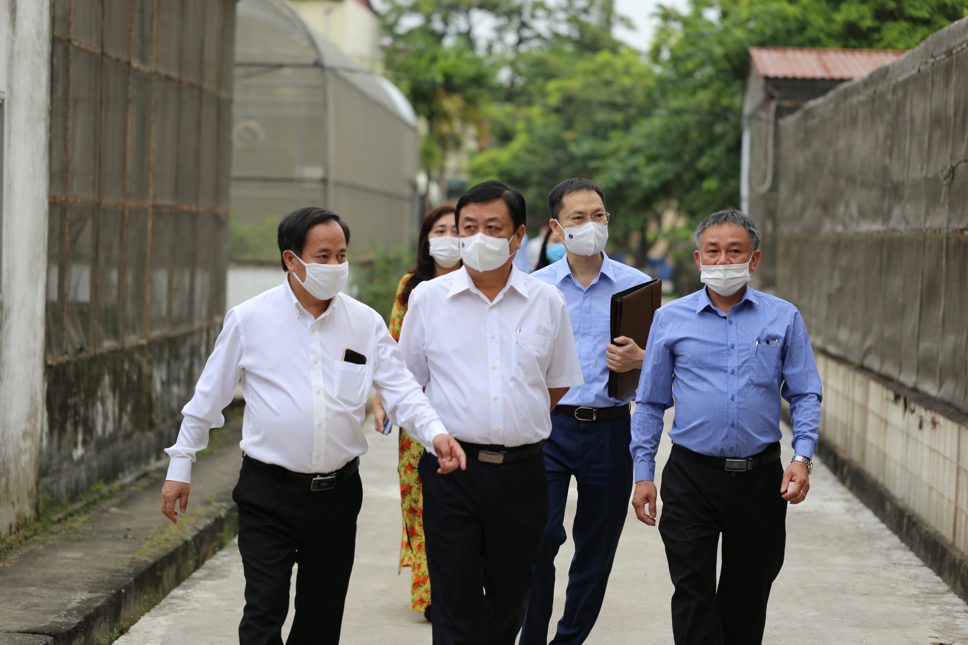 Đồng chí Lê Minh Hoan - Ủy viên Trung ương Đảng, Bộ trưởng Bộ Nông nghiệp và PTNT thăm khu nhà lưới thí nghiệm của Viện Bảo vệ thực vật