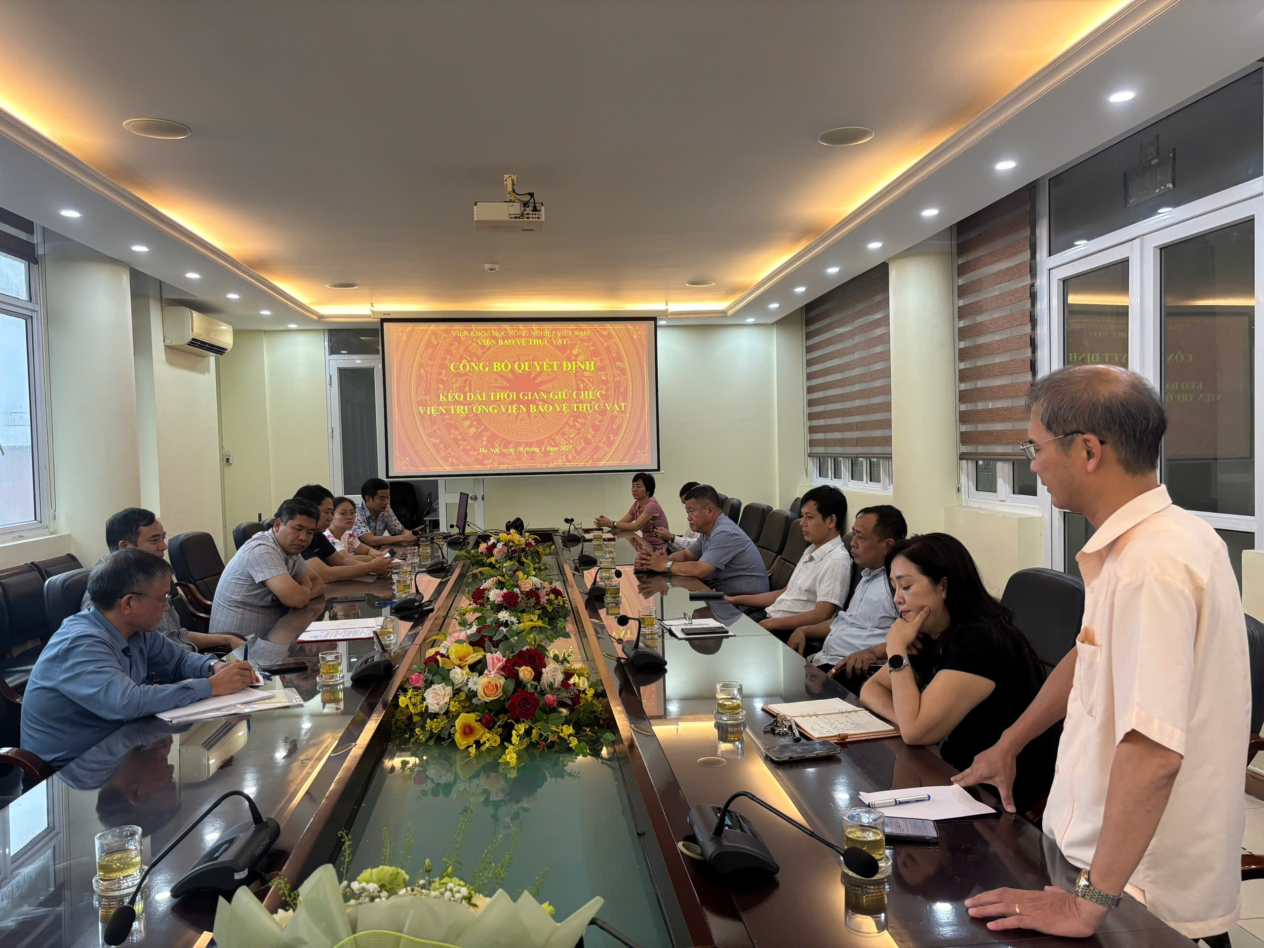 Phát biểu mở đầu TS. Hà Minh Thanh - Phó Viện trưởng - Phó Bí thư Đảng ủy - Chủ tịch Công đoàn đã phát biểu, nhấn mạnh ý nghĩa quan trọng của Quyết định và vai trò của Viện trưởng trong việc lãnh đạo, điều hành các hoạt động nghiên cứu, đào tạo và quản lý. Tiếp đó, ông Trần Thanh Toàn – Chánh Văn phòng Viện, thừa ủy quyền Giám đốc Viện Khoa học Nông nghiệp Việt Nam đã công bố Quyết định số 699/QĐ-KHNN-TCHC, ngày 29/9/2025 của Viện Khoa học Nông nghiệp Việt Nam về việc kéo dài chức vụ Viện trưởng Viện BVTV.