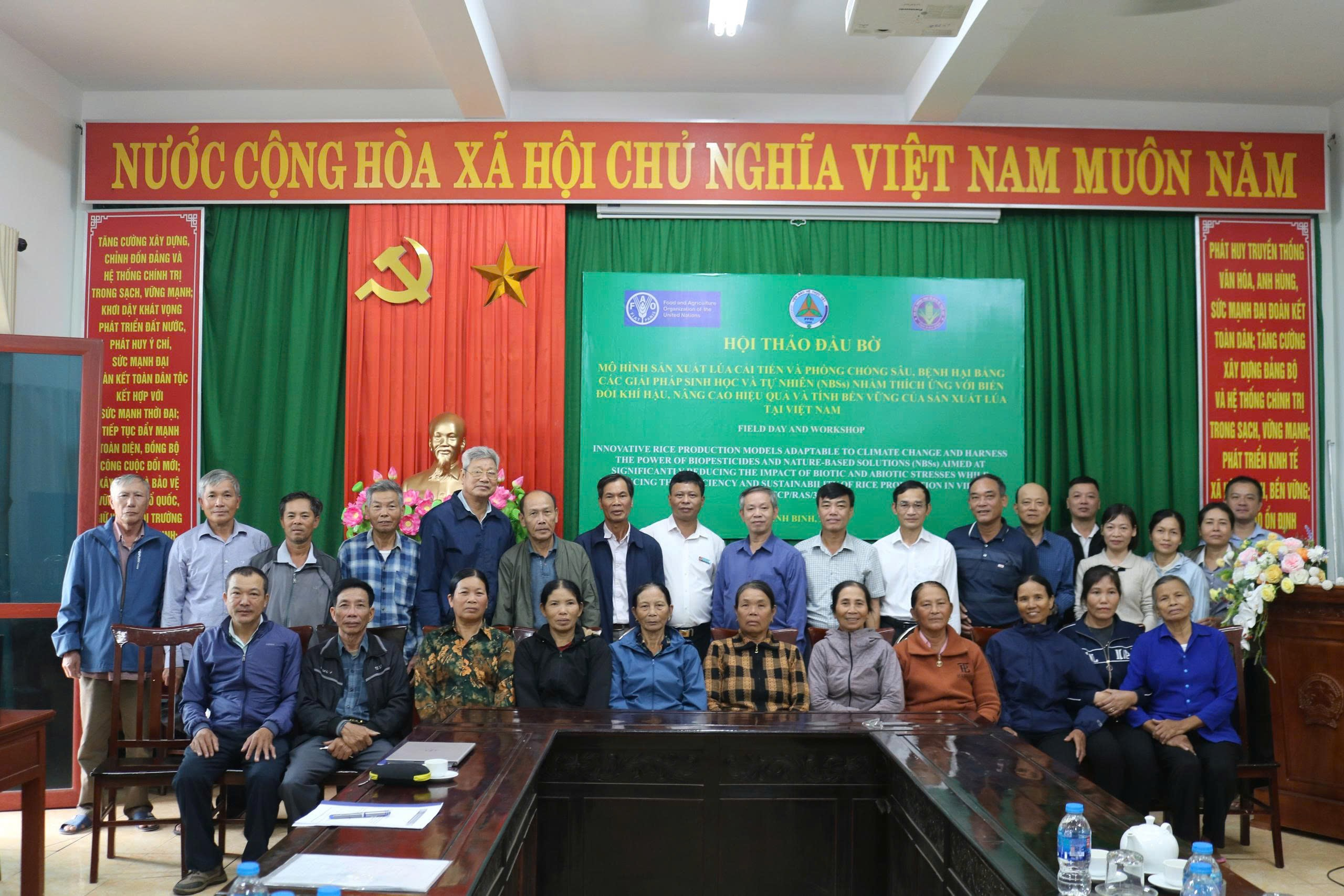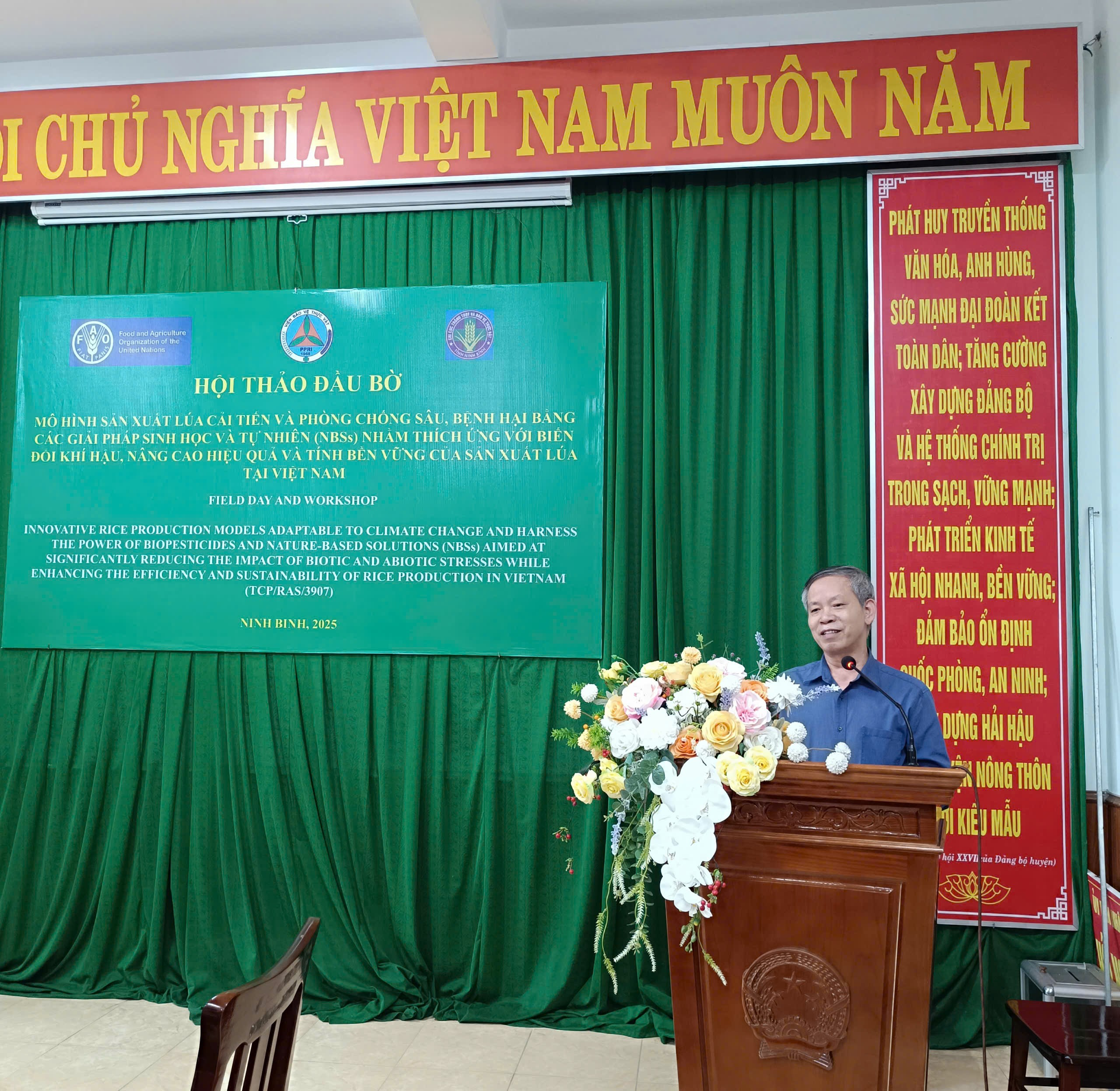 Sáng ngày 31 tháng 10 năm 2025, tại xã Hải Quang, tỉnh Ninh Bình, Viện Bảo vệ thực vật phối hợp với FAO Việt Nam, Trạm Trồng trọt và Bảo vệ thực vật Hải Hậu, cùng Công ty TNHH Thương mại và Dịch vụ Thái Sơn tổ chức Hội thảo đầu bờ tham quan mô hình “Sản xuất lúa cải tiến và phòng chống sâu bệnh hại bằng các giải pháp sinh học và tự nhiên (NBSs) nhằm thích ứng với biến đổi khí hậu, nâng cao hiệu quả và tính bền vững của sản xuất lúa tại Việt Nam.”