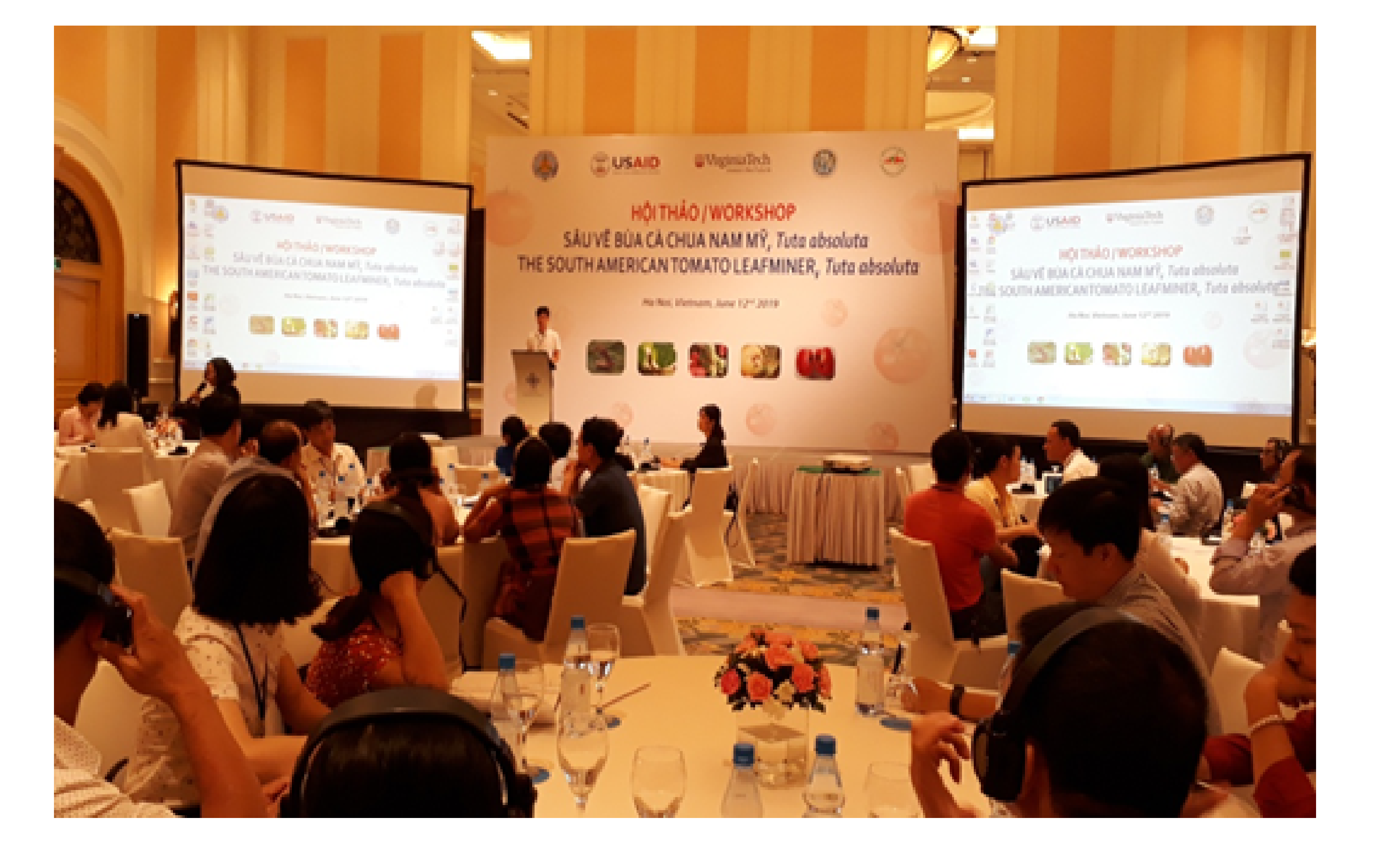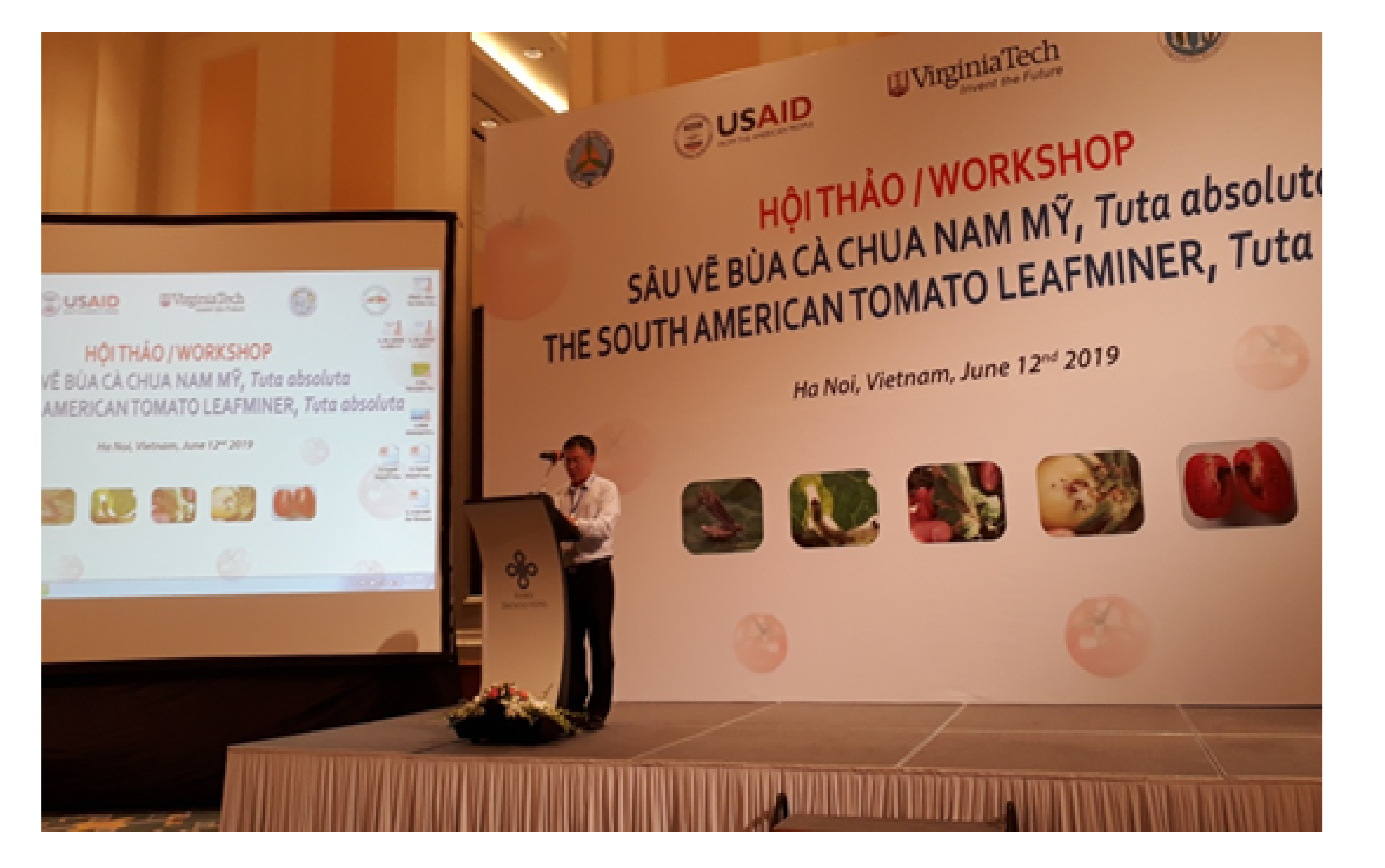 Ngày 12/6 tại Hà Nội, Được sự đồng ý của Bộ Nông nghiệp và PTNT, Viện Bảo vệ thực vật đã phối hợp với Chương trình Đổi mới quản lý sinh vật hại tổng hợp (IPM Innovational Lab.) giữa Trường Đại học Virginia Tech, Hoa Kỳ và Viện Cây ăn quả miền Nam tổ chức Hội thảo Sâu vẽ bùa cà chua Nam Mỹ (Tuta absoluta). Đến dự Hội thảo ngoài các đại biểu quốc tế còn có sự tham gia của các chuyên gia, các nhà khoa học, các cơ quan quản lý như: Viện Bảo vệ thực vật, Cục BVTV, Hội côn trùng học Việt Nam; Hội KHKT Bảo vệ thực vật Việt Nam; 11 chi cục Trồng trọt và Bảo vệ thực vật ở một tỉnh phía Bắc. Hội thảo nhằm mục đích chia sẻ thông tin và cảnh báo nguy cơ loài này có thể xâm lấn vào Việt Nam, nếu khi không có sự kiểm soát chặt chẽ. Các cơ quan quản lý, các nhà khoa học cần theo dõi sát sao đặc biệt cần làm tốt công tác kiểm dịch thực vật để ngăn ngừa để không cho loài này xuất hiện ở Việt Nam.