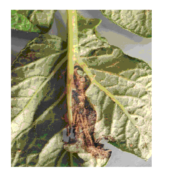 Hình 2. Lá khoai tây bị hại do sâu non ngài đục củ khoai tây