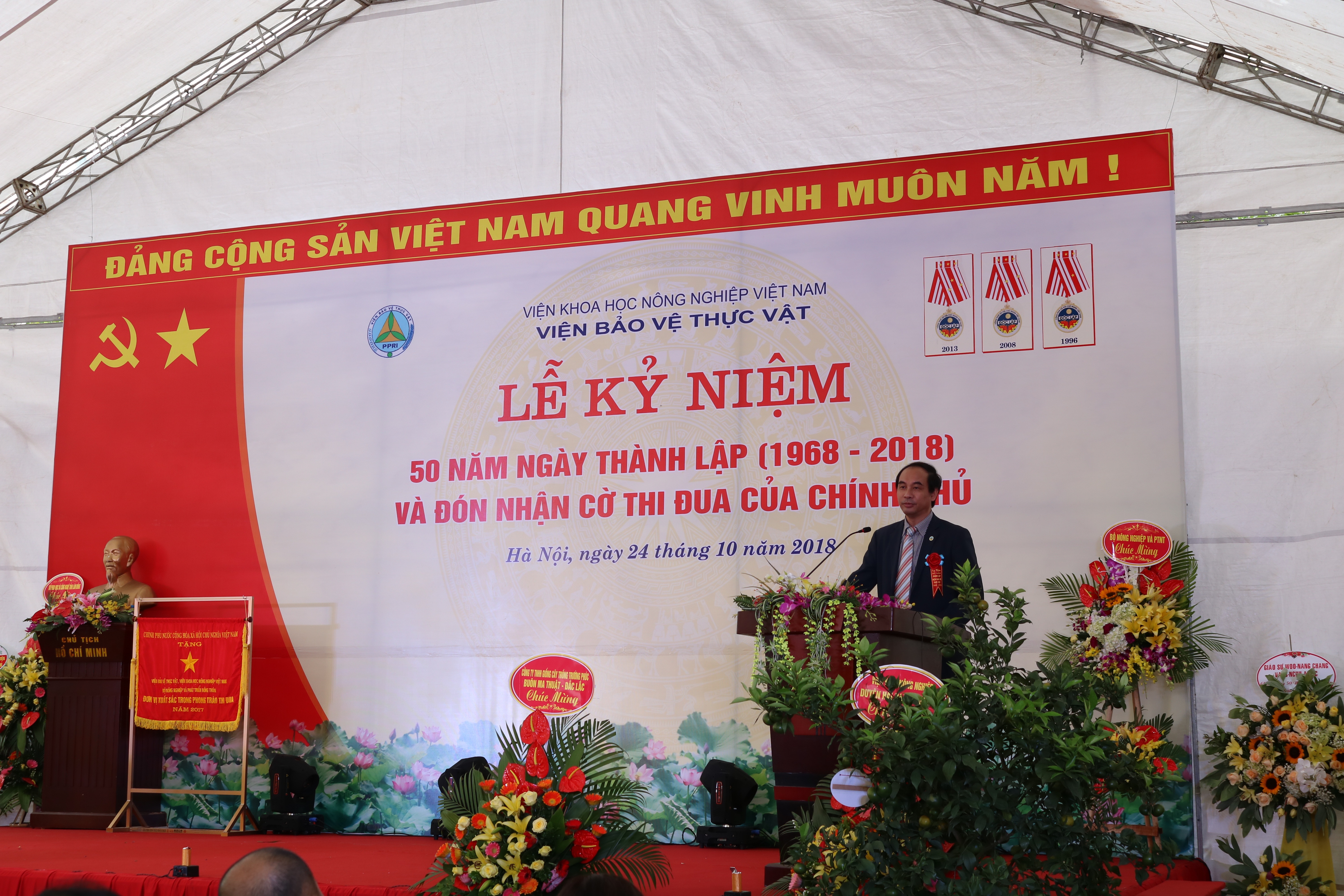 Tại buổi lễ, ông Nguyễn Văn Liêm – Viện trưởng Viện BVTV đã báo cáo tóm tắt những thành tựu đã đạt được trong 50 năm qua và định hướng chiến lược cho những năm tiếp theo. Kết quả có được như ngày hôm nay đã chứng minh được tập thể Viện BVTV luôn có sự đoàn kết và nhất trí cao, luôn tìm tòi, chia sẻ trong nghiên cứu cũng như chuyển giao KHKT phục vụ sản xuất. Thế hệ cán bộ sau luôn tiếp bước các thế hệ đi trước và luôn mong muốn được các thế hệ cán bộ đi trước tiếp tục chia sẻ kinh nghiệm cho lớp thế hệ cán bộ trẻ.