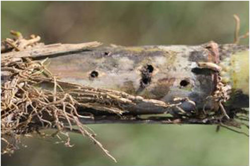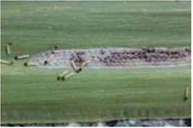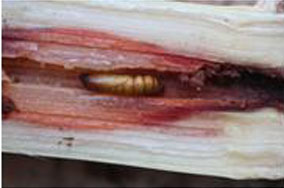 - Thời kỳ sau, sâu non đục vào từng lóng riêng rẽ nhưng không làm khô lá ngọn.