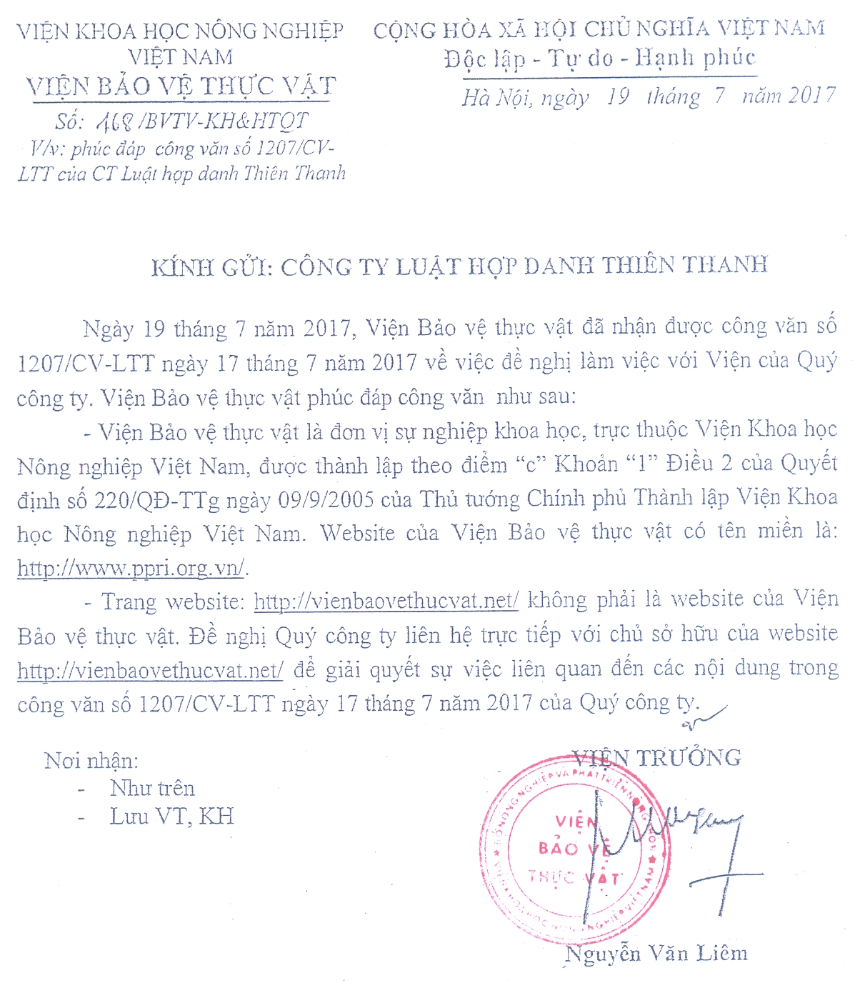 Thông báo về việc mạo danh Viện Bảo vệ thực vật