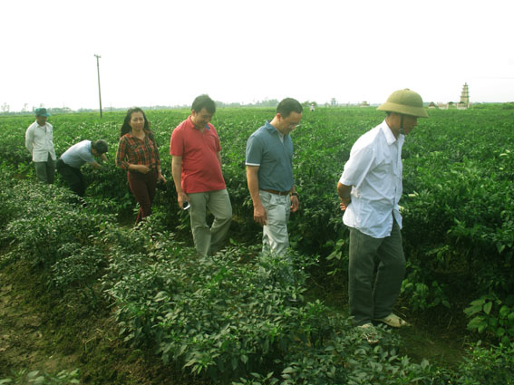 Thăm mô hình trồng ớt tại xã An Thịnh, huyện Lương Tài, tỉnh Bắc Ninh, các thành viên trong đoàn kiểm tra đánh giá cao tinh thần làm việc của nhóm tác giả, kết quả thực hiện đáp ứng đúng các nội dung theo thuyết minh và hợp đồng, quy trình kỹ thuật đã được chuyển giao cho người dân. Xác định ớt là cây trồng chủ lực và không thể thiếu trong cơ cấu mùa vụ, cây trồng và là cây trồng mang lại giá trị hiệu quả kinh tế cao, chính quyền và người dân đã dành nhiều diện tích đất để xây dựng mô hình trồng ớt. Nhờ áp dụng đồng bộ các giải pháp như áp dụng chế phẩm BS2 xử lý đất để phòng trừ bệnh mốc sương, thán thư, sử dụng giống chống chịu và có tính thích ứng cao; nguồn nước tưới; luân canh cây trồng; vệ sinh đồng ruộng…năng suất ớt tại đây đã đạt từ 8 – 10 tấn/ha, giá bán 7 – 8 ngàn đồng/kg.