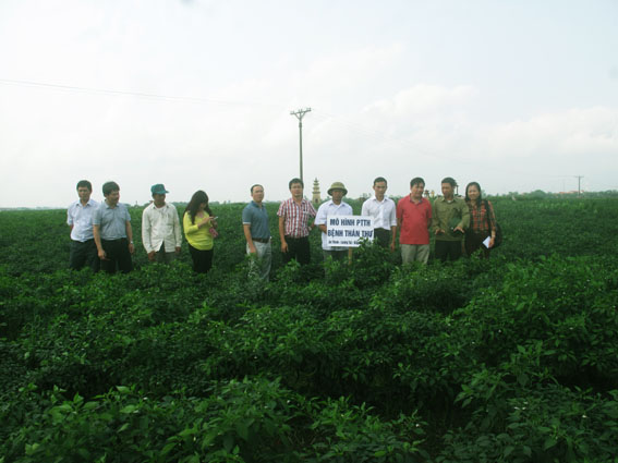 Thực hiện quy chế về quản lý nhiệm vụ KHCN cấp nhà nước đối với đề tài “Nghiên cứu ứng dụng biện pháp thân thiện với môi trường phòng chống bệnh mốc sương (Phytophthora sp.), bệnh thánh thư (Colletotrichum sp.) trên cây cà chua và ớt” thuộc đề tài Nghị định thư Việt Nam – Hàn Quốc, ngày 27/4/2014 Viện BVTV đã tổ chức kiểm tra và đánh giá kết quả mô hình phòng trừ bệnh thán thư hại ớt tại Huyện Lương Tài, tỉnh Bắc Ninh.
