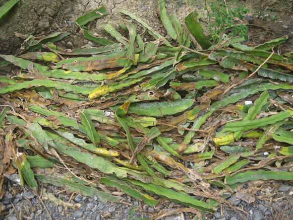 Tàn dư bệnh không được thu gom, xử lý hợp lý là một trong những nguyên nhân làm lan truyền bệnh đốm trắng thanh long