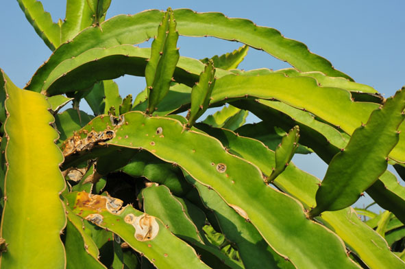 Vết bệnh hại trên cành.... TRên quả thanh long